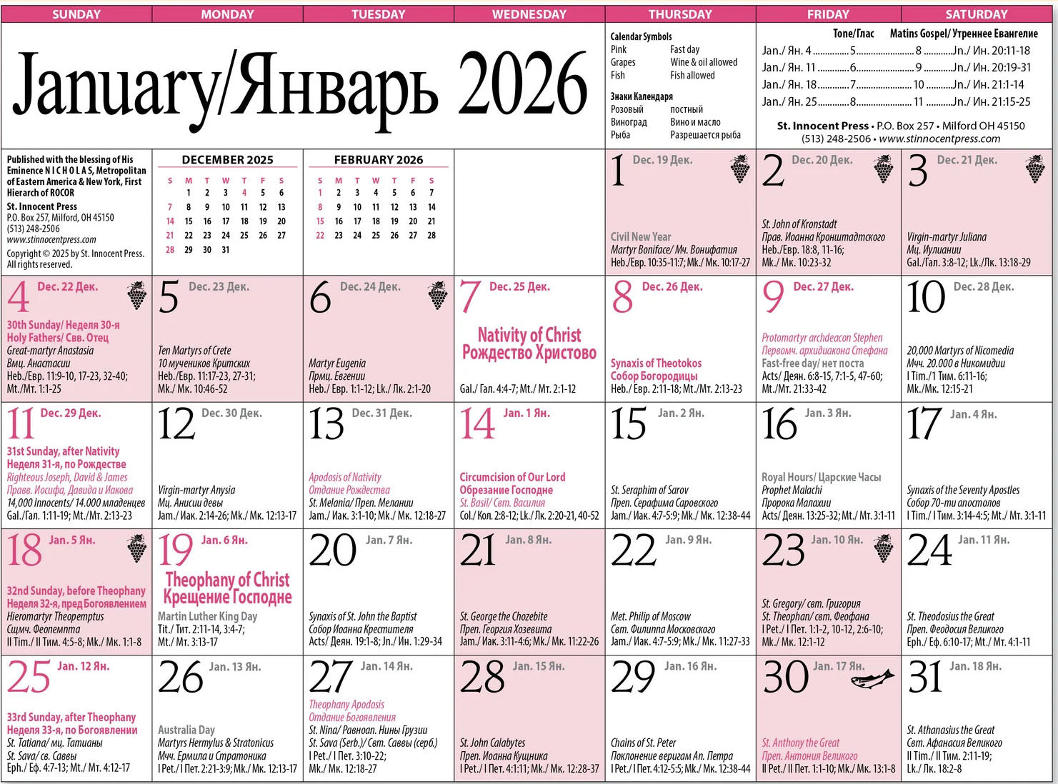 Троицкий Православный Русский Календарь на 2026 г.