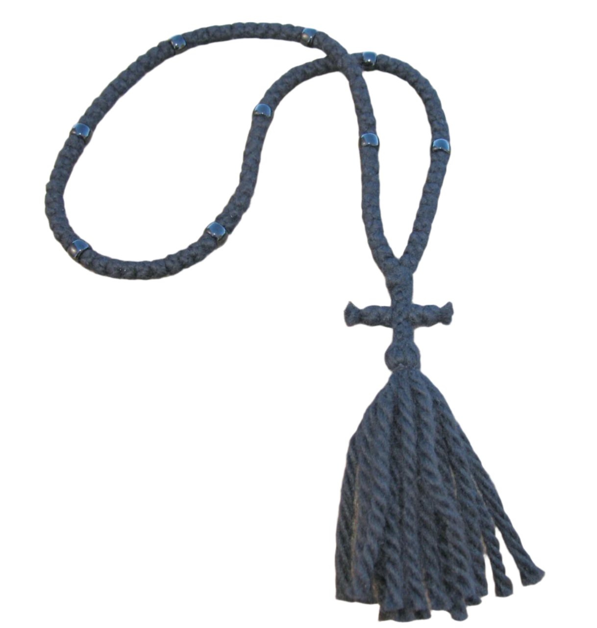 100-knot Russian-style Prayer Rope (4 ply) with Black Beads