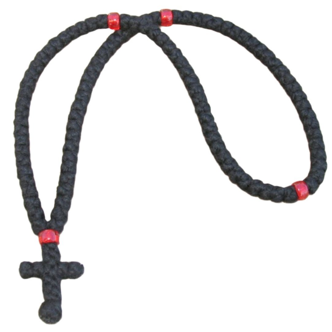 100-knot Greek-style Prayer Rope (3 ply) with Red Beads