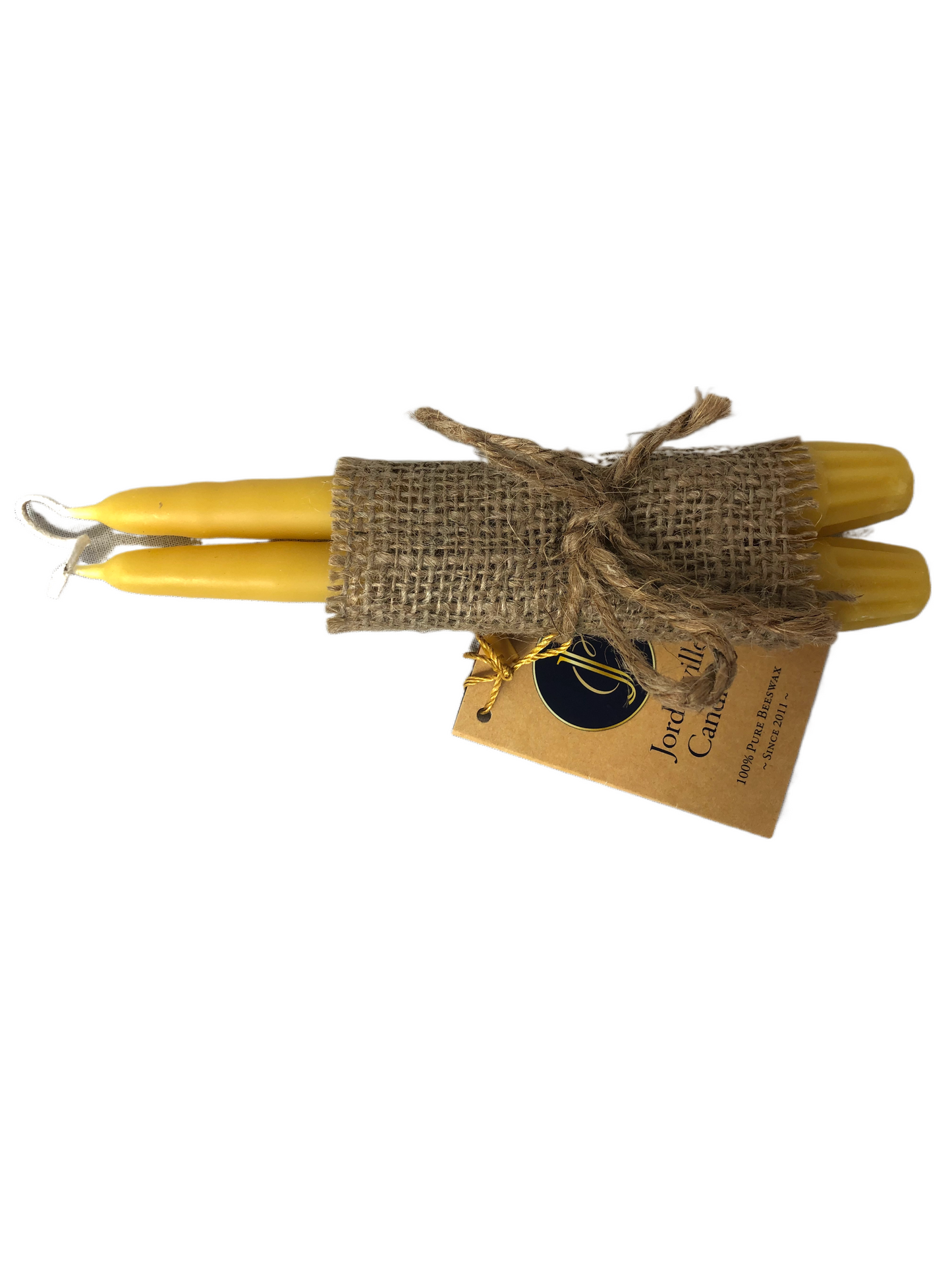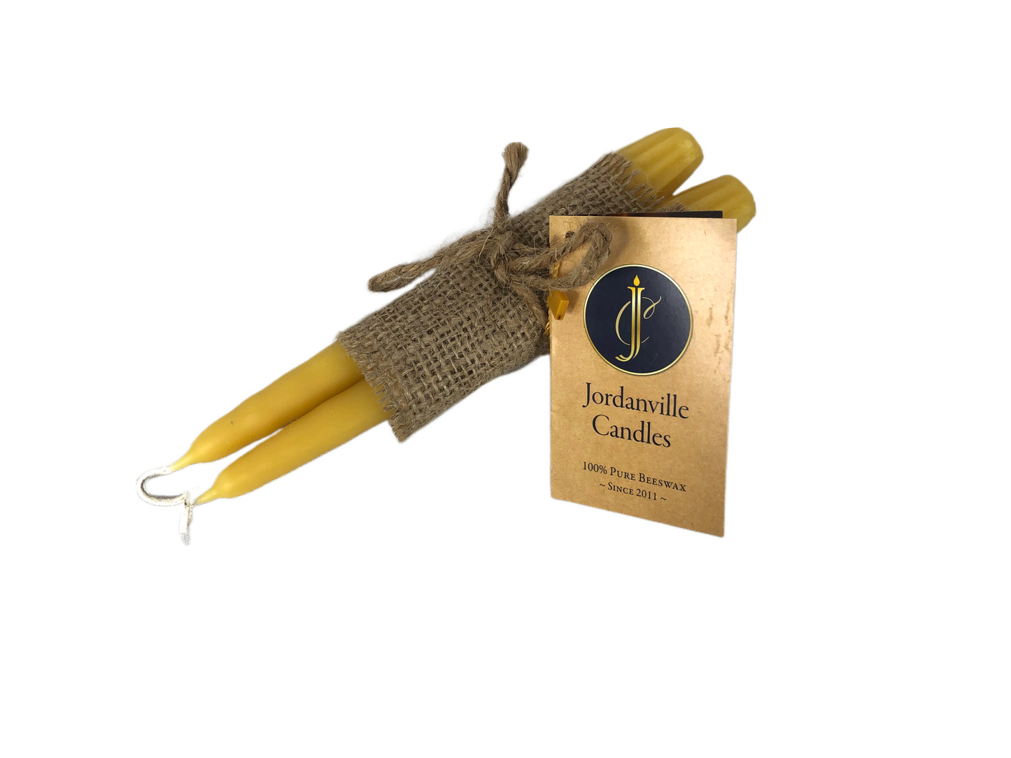 Pair of 7 1/2" x 11/16- 23/32" thick fitted end fluted candles made from pure beeswax.
