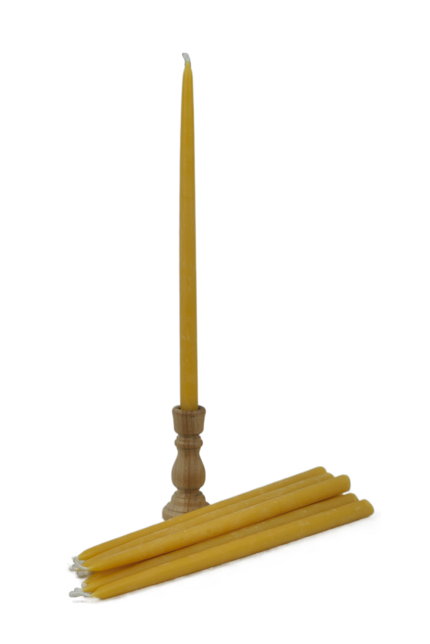 Box of thin tapered 9 1/2"x1/2" (24cm x 13mm) candles made from pure beeswax.