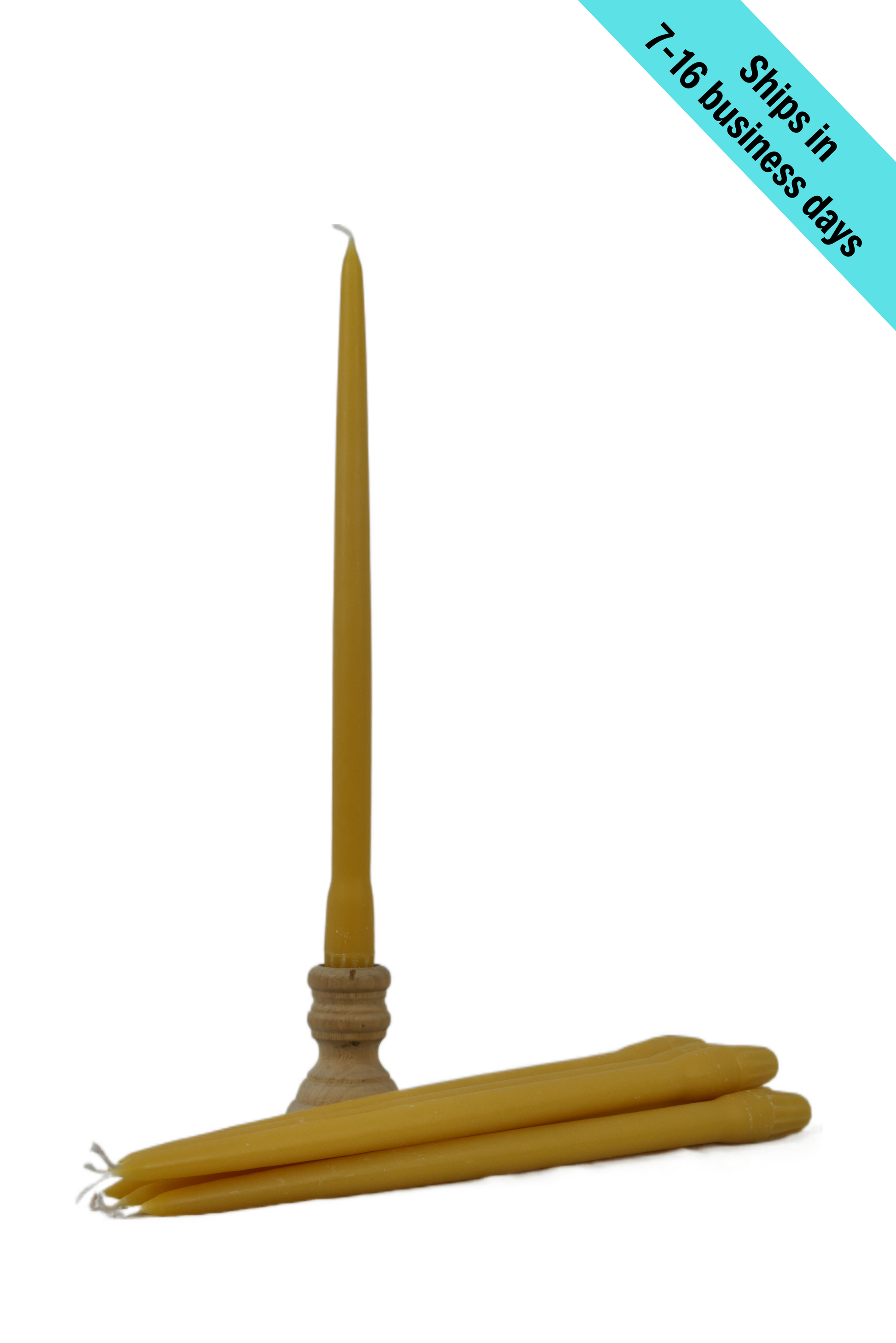 Box of 11 1/2" x 19/32 - 5/8" (29cm x 15mm) thick fitted end fluted candles made from pure beeswax.