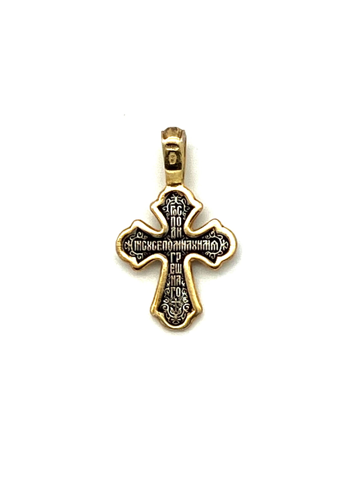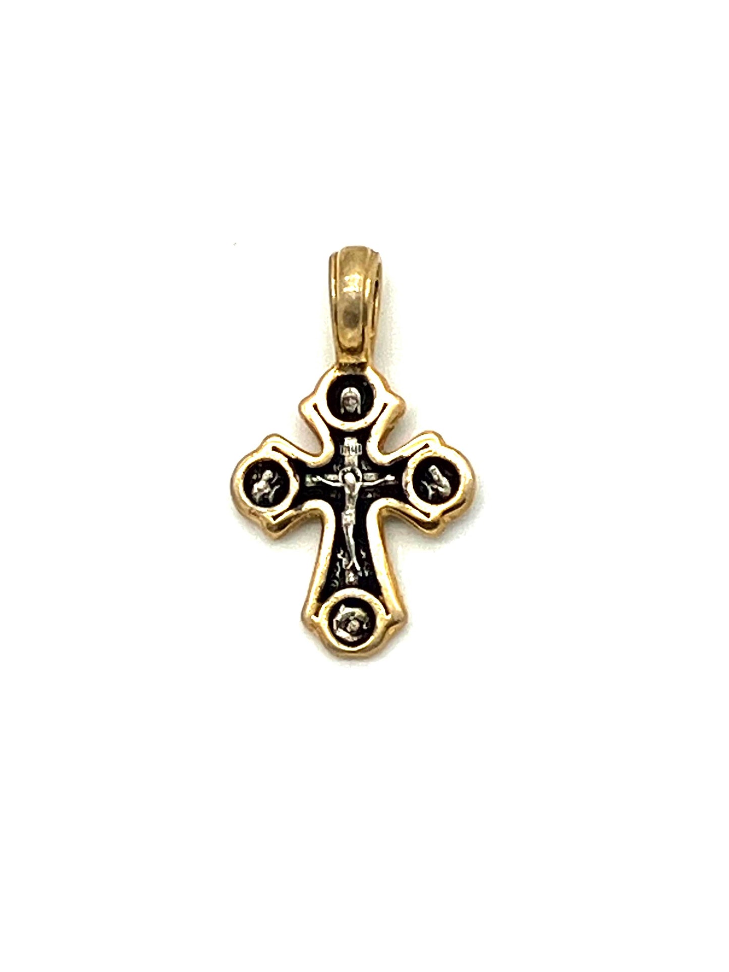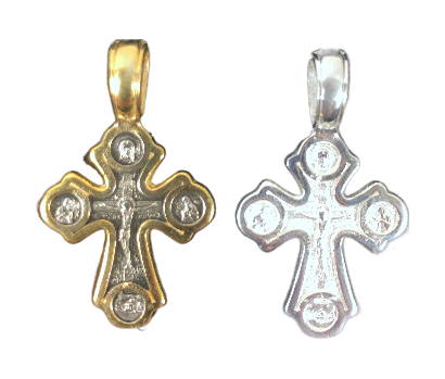 Baptismal crosses (traditionally given on the day of one's baptism) display our faith in Christ and remind us that we have been called to walk "in newness of life." (Romans 6). This sterling silver baptismal cross features a bas-relief metallic icon of the crucifixion of Christ on its face and a Slavonic inscription on the reverse.