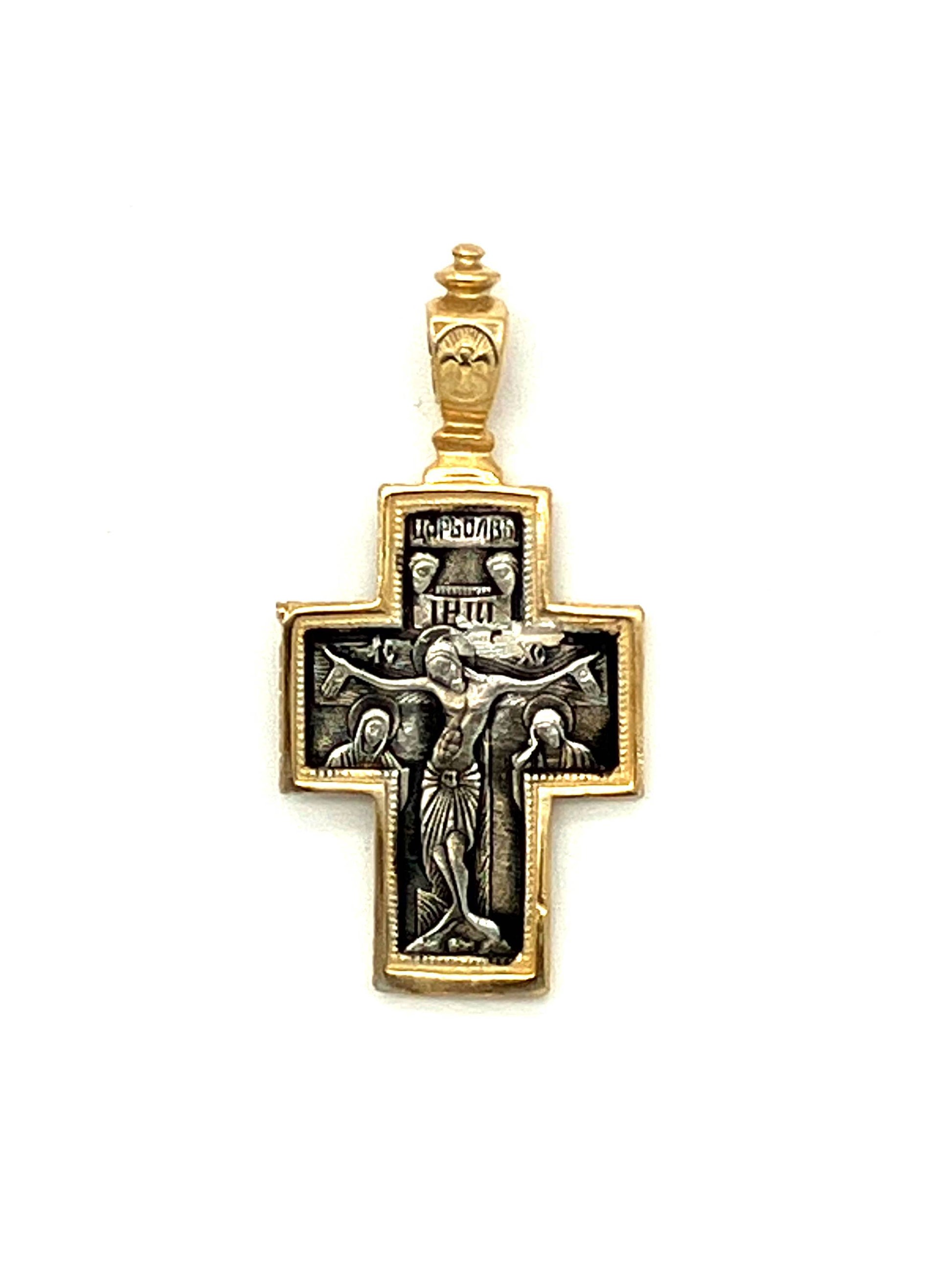 Baptismal Cross - Style No. 21 (sterling silver with icons of crucifixion and Theotokos)