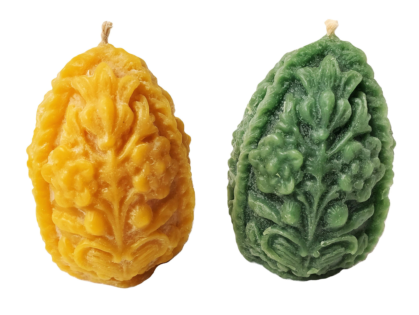 This is a pure bees wax Easter egg candle made by the nuns of Iveron Mother of God Monastery in New York featuring a floral design.