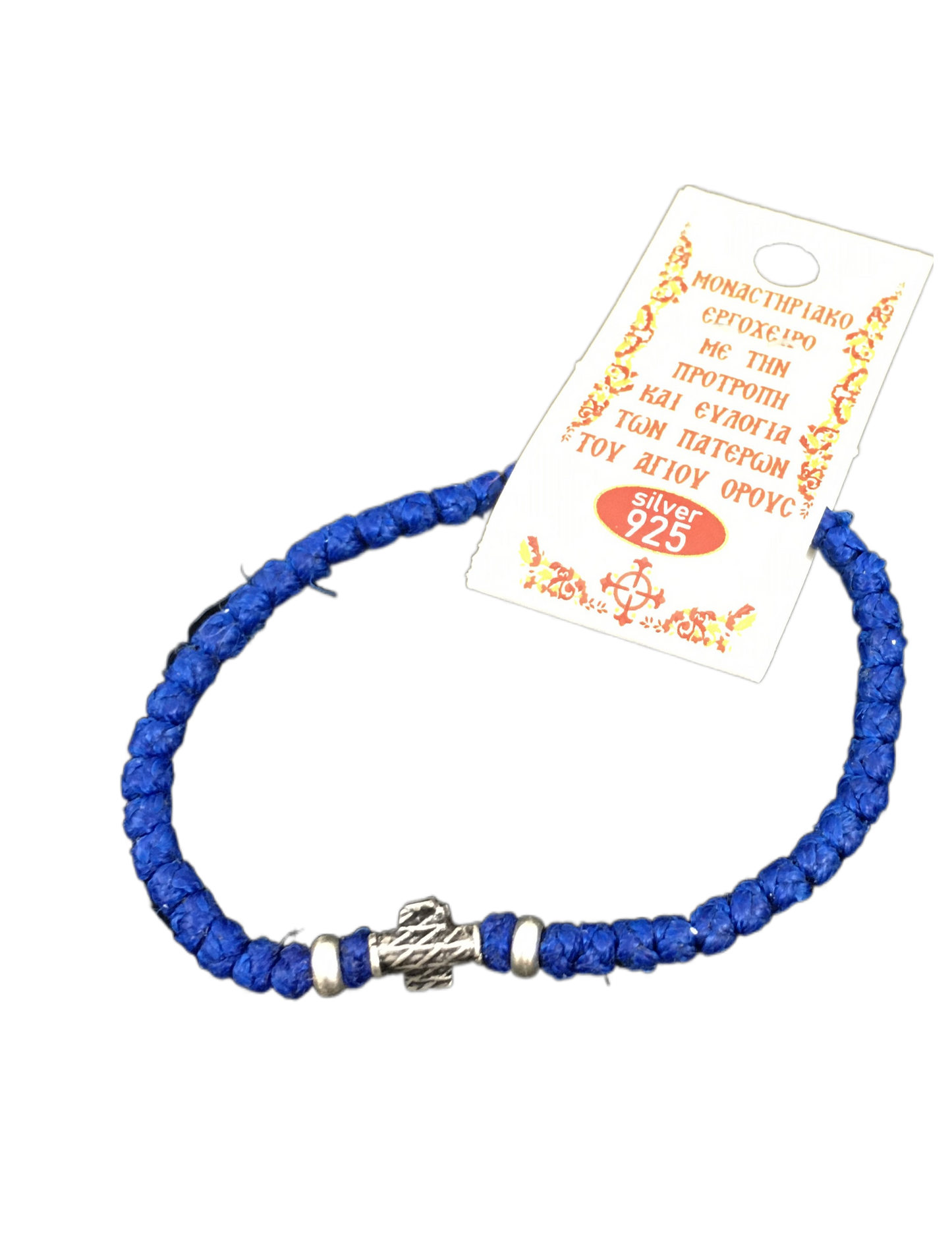 50-knot Prayer Rope 14 (Wax Blue with Silver Cross and Beads)