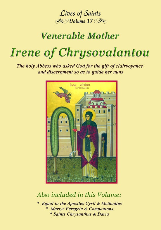 Saint Irene of Chrysovanlandou: Saint Irene was abbess of a great convent. She suffered many attacks from the demons and, while yet a novice, accomplished great ascetical feats. She was granted the gift of clairvoyance and knew the thoughts of all that came to her. Wonderful healings have been performed by her to the present day.
