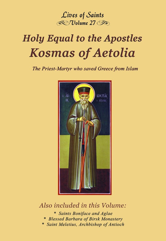 Holy Equal to the Apostles Kosmas of Aetolia: Although a monk who had vowed never to leave his monastery on Mount Athos, he could no longer bear to see his fellow Greek Christians converting to Islam through either fear or convenience. Reading this life, the reader accompanies the saint on his journey through Greece. His sermons and miracles brought many back to the Orthodox faith but also resulted in his martyrdom. His prophesies still astound many to this day.
