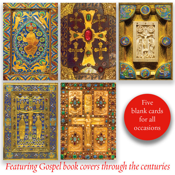 Pack of ten 5 x 7 blank note Gospel Book cover cards (two each of five styles) and 10 envelopes.
