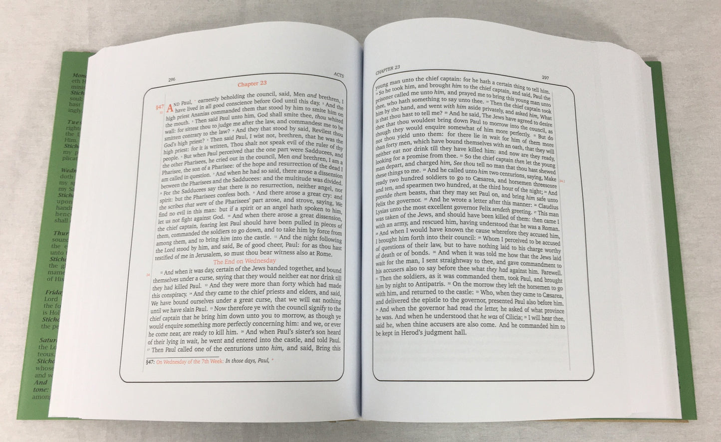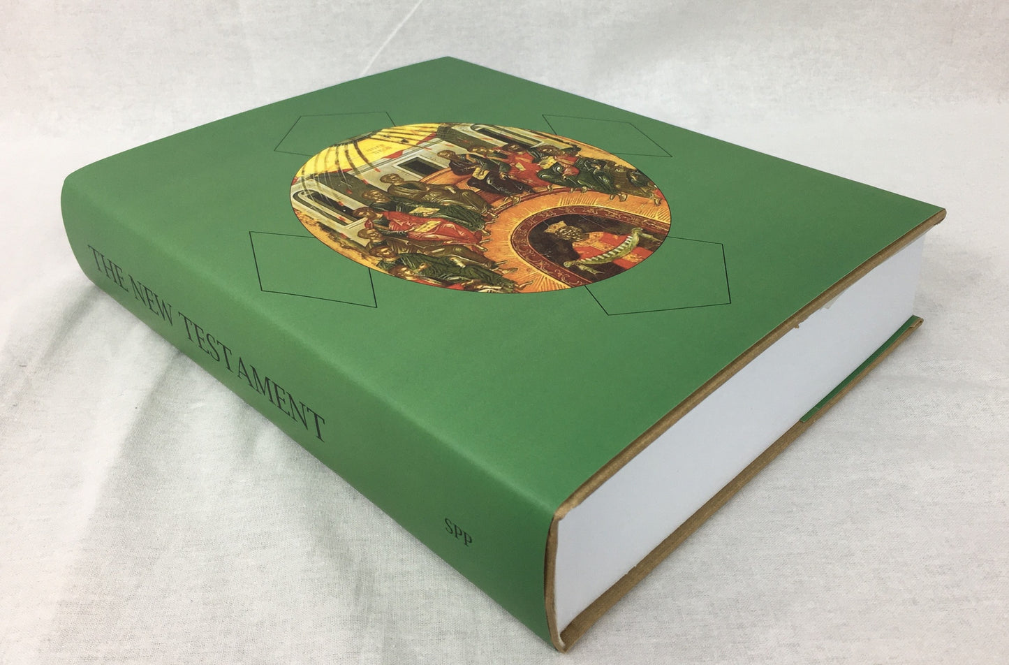 Ideal for an icon corner and reader’s services at home! This book contains the complete New Testament, with all liturgical markings as in the Gospel Book and the Epistle Book, so that all the New Testament readings in the Orthodox services can be read from one volume. The appendices include all relevant prokeimena, along with the service text for Typica, maps, and a set of pages for a family record. The Biblical text is the King James Version. Prokeimena use the text of the Holy Transfiguration Monastery Psalter.
