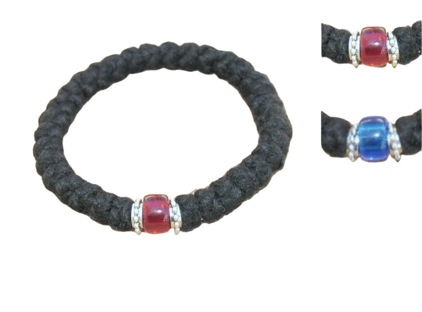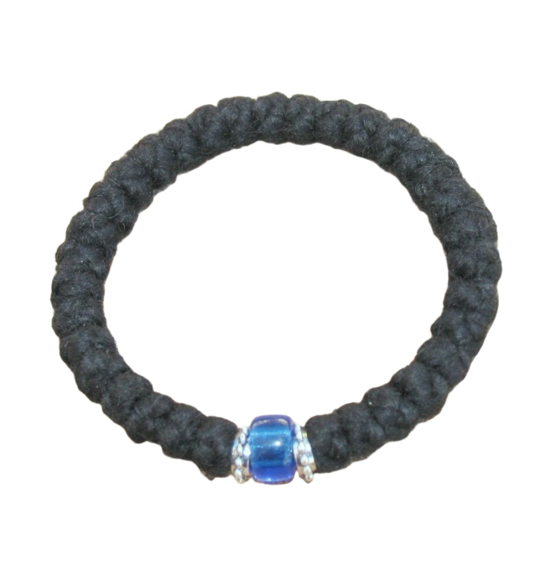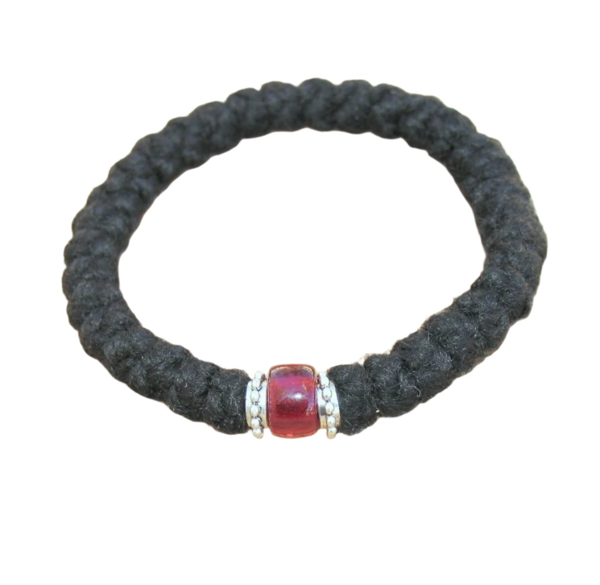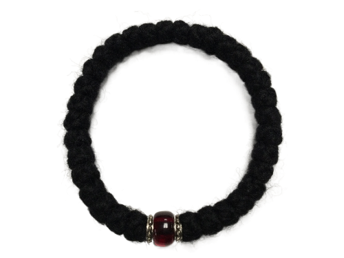 This prayer rope is made with 3-ply Athos yarn and is adorned with silver accents on either side of the connector bead.