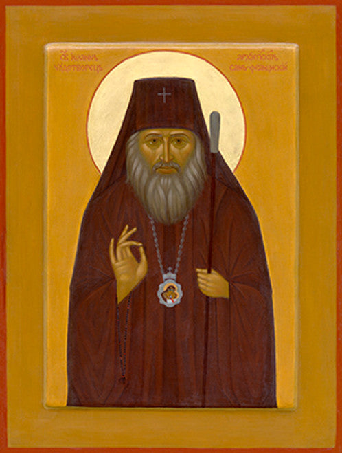 This printed icon is made-to-order and hand-crafted by monks at the monastery Icon Studio. The mounted icons are preserved under a protective coating with sides and backs painted burgundy. Suitable for personal veneration or as a meaningful gift.