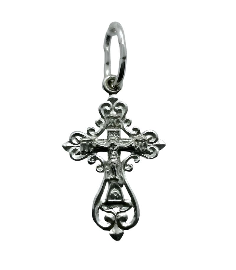 Sterling Silver Cross - Style No. 541 (with Icon of Crucifixion and Inscription)