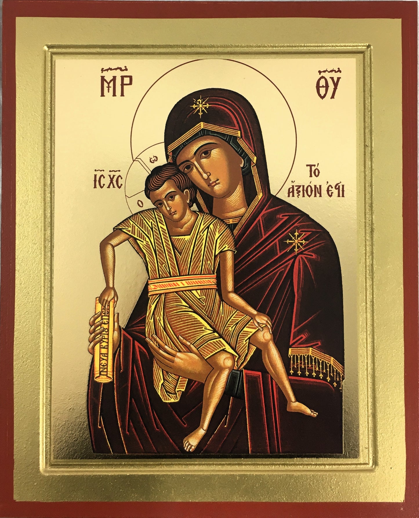 Theotokos, Axios Estin, Silk Screen Icon on Wood