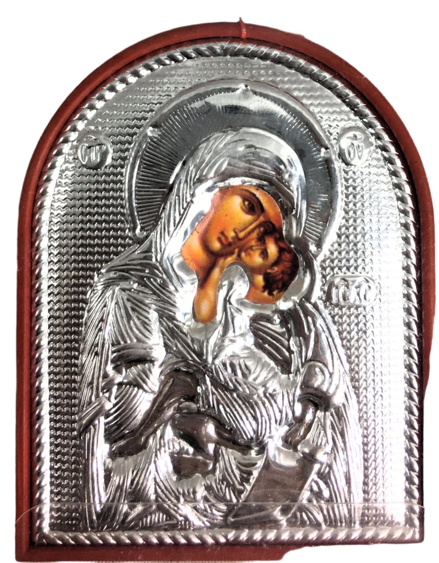 Theotokos - Sweet Kissing, Small Rounded Metallic Icon