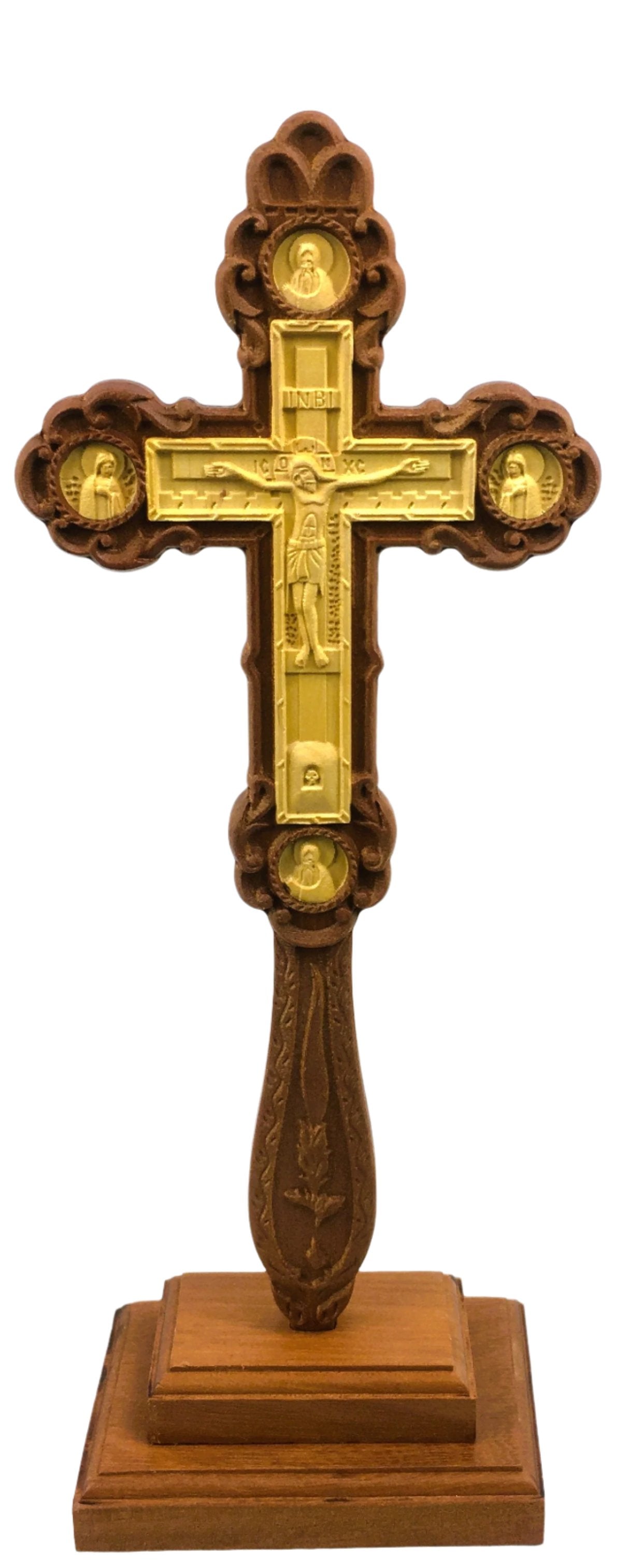 Wooden Standing Cross with Gold Cross Inset